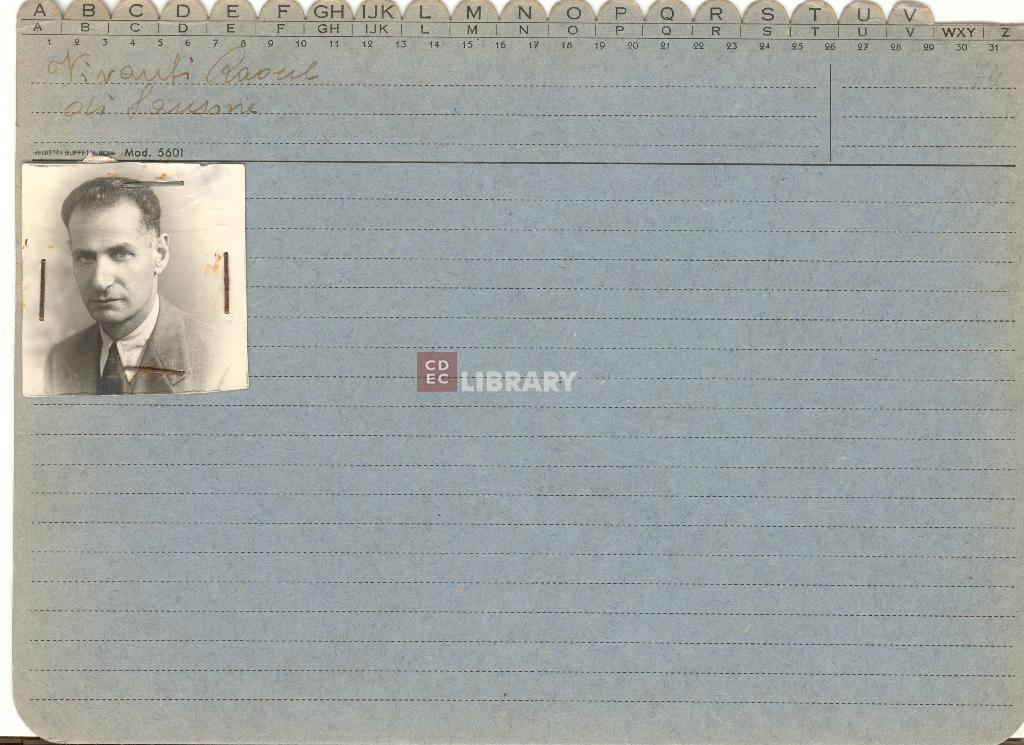 Raoul Vivanti, figlio di Sansone Vivanti e Giulia Coen è nato in Italia a Roma il 16 ottobre 1897. Coniugato con Annita Coen. Arrestato a Roma (Roma). Deportato nel campo di sterminio di Auschwitz. Non è sopravvissuto alla Shoah. luogo di arresto: Roma data di arresto: 16/10/1943 luogo di detenzione: ROMA Collegio Militare luogo di raccolta: ROMA Collegio Militare destino: Morto/a in campo di sterminio numero di convoglio: convoglio n. 02, 18/10/1943 data di partenza del convoglio: 18/10/1943 data di arrivo del convoglio: 23/10/1943 campo di destinazione: Auschwitz numero di matricola: S |