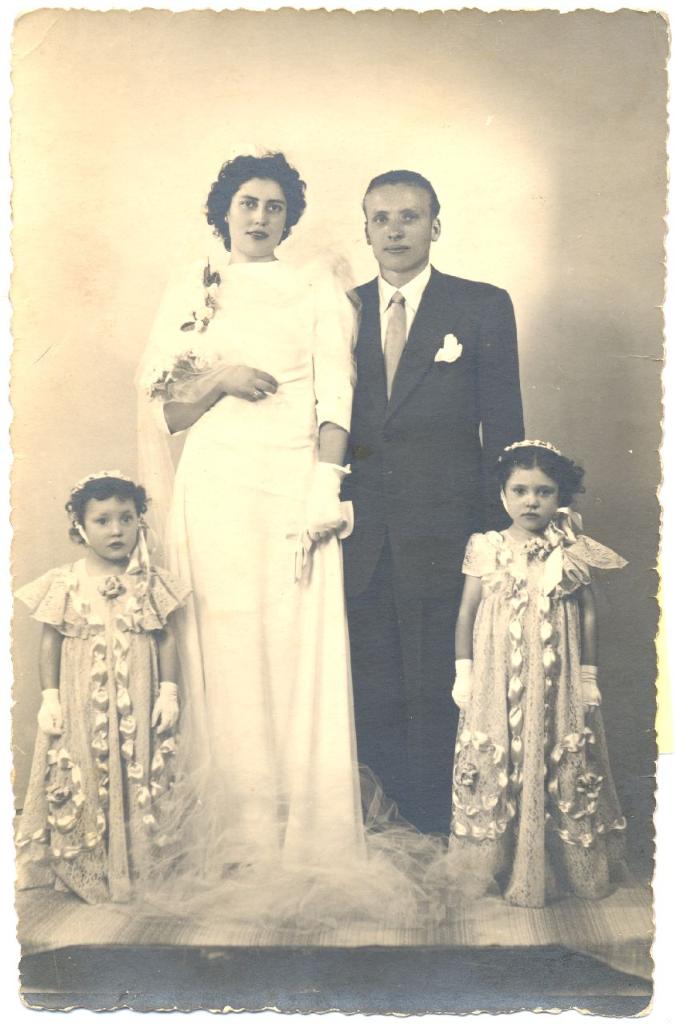 | osservazioni | Da sinistra la damigella Fiorina Di Segni, la sposa Giovanna Fiorentino in Vivanti, lo sposo Vito Vivanti e una bambina non identificata |