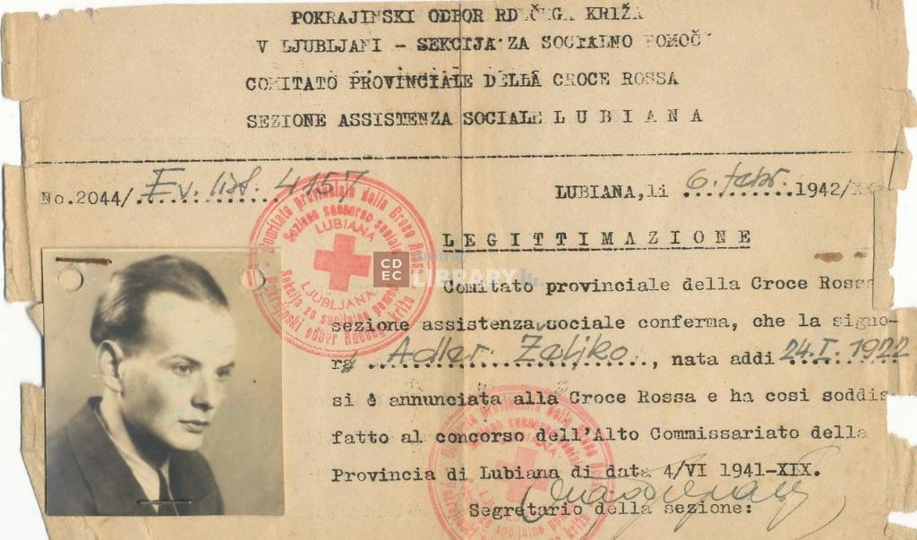 osservazioni | Il documento di legittimazione della Sezione assistenza sociale di Lubiana del Comitato Provinciale della Croce Rossa conferma che il signor Adler Zeliko, nato il 22 gennaio 1922 si รจ presentato il 6 febbraio 1942 alla Croce Rossa |