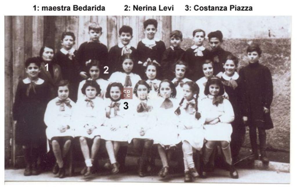 | osservazioni | Nella fotografia si riconoscono 1: la maestra Lidia Bedarida; 2: Nerina Levi; 3: Costanza Piazza Sed; inoltre sotto Nerina: Lesly [?] e a destra di Costanza Piazza Sed (ossia la quarta da sinistra): Matilde Afnaim. |