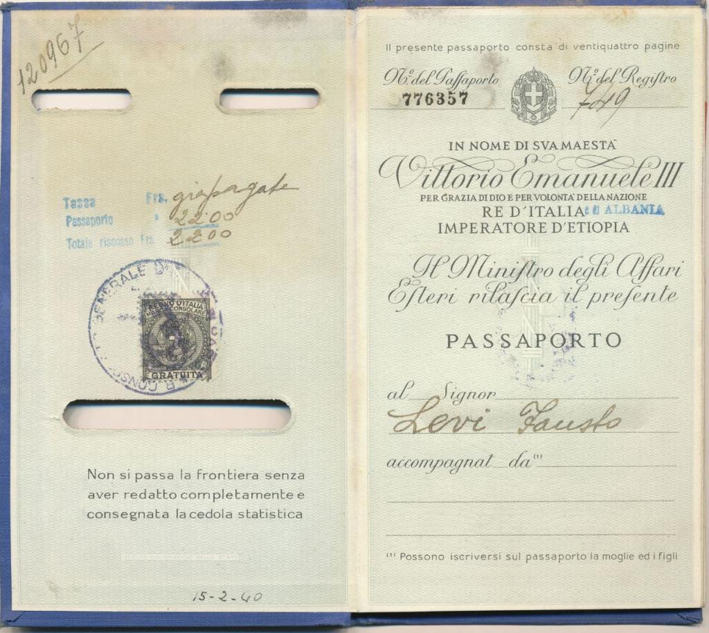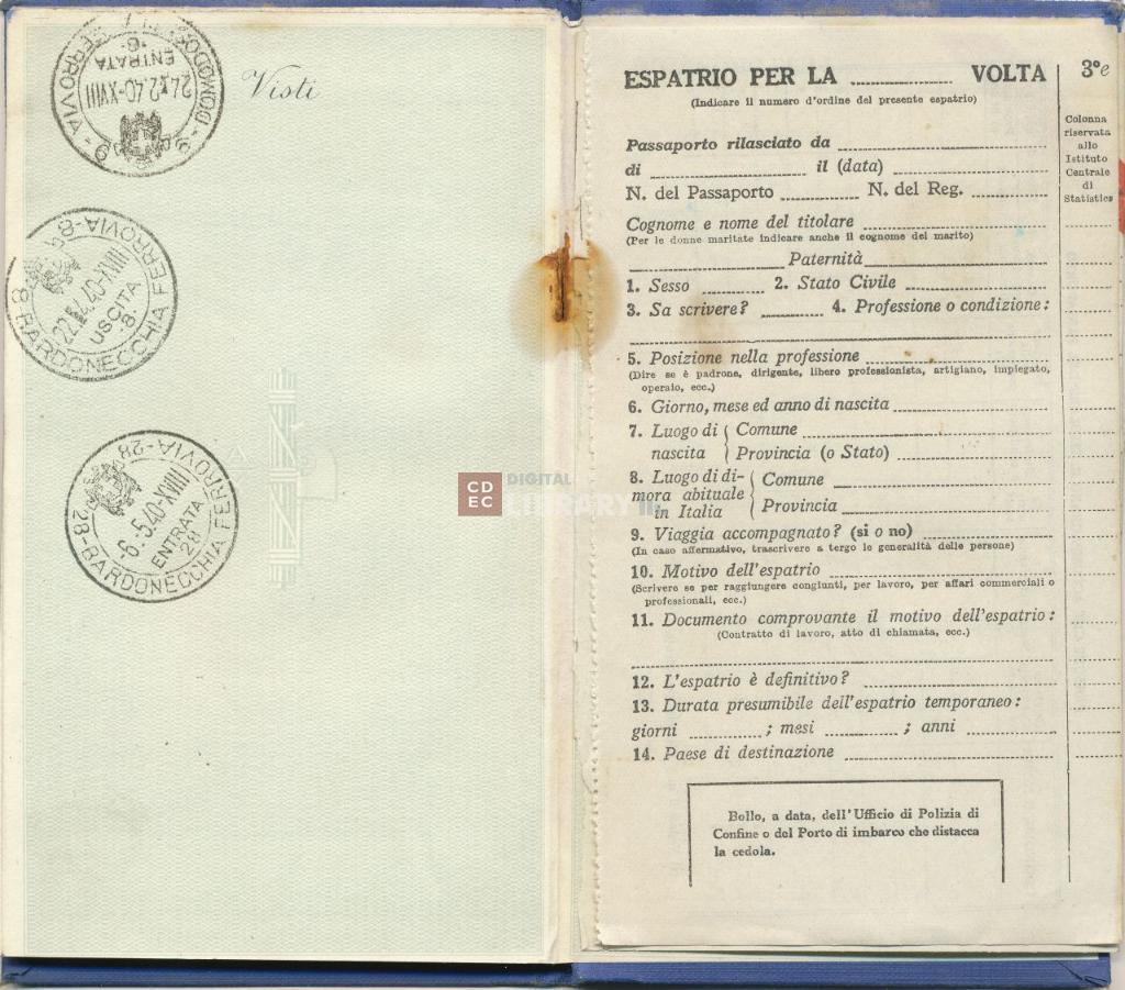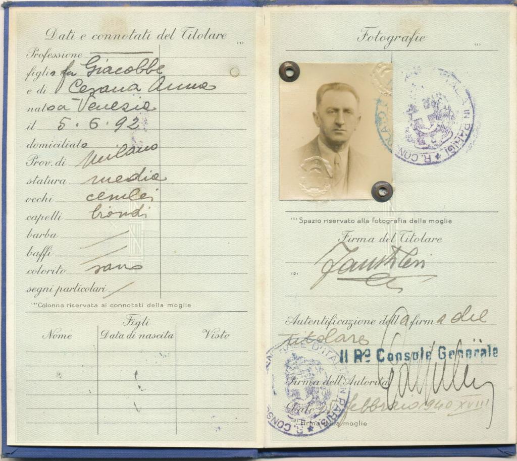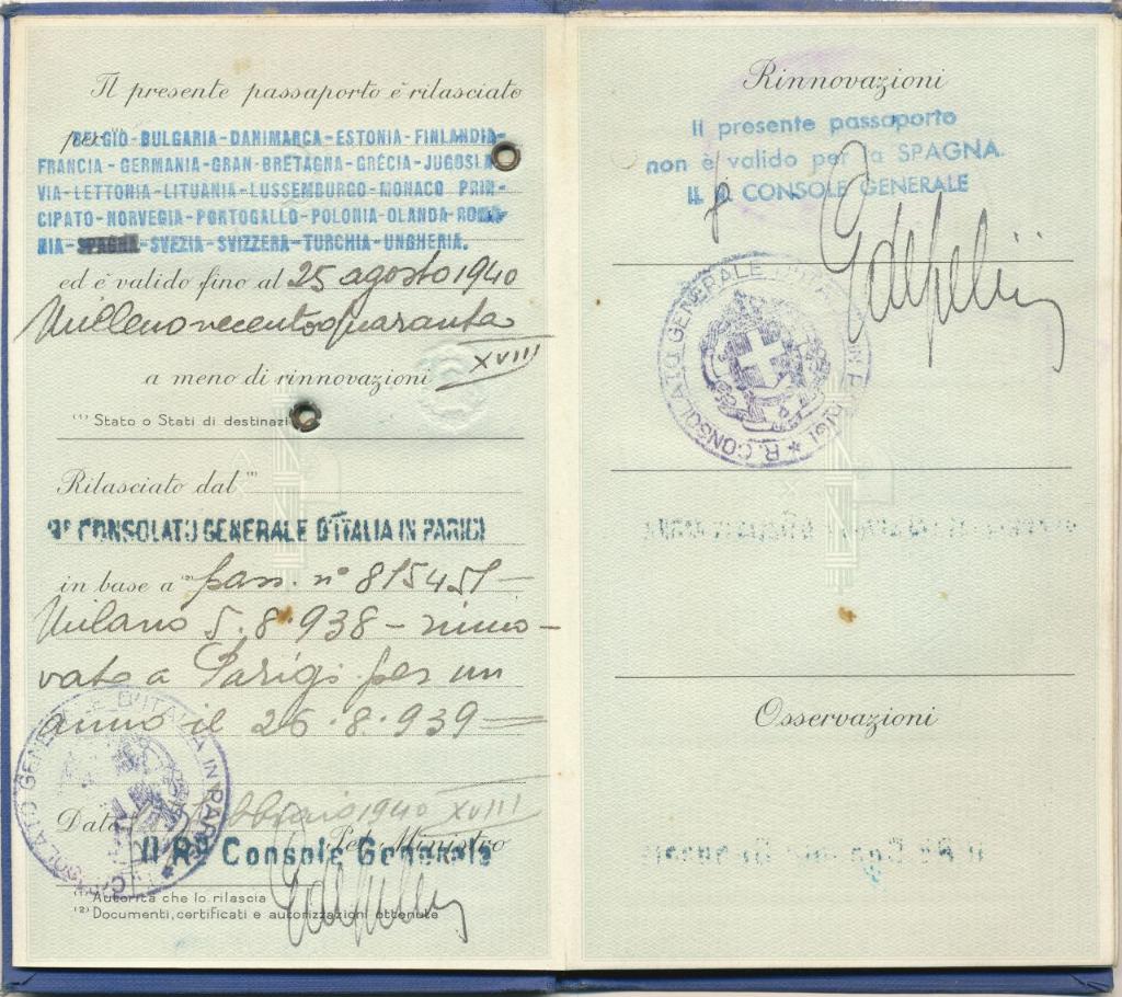 | osservazioni | Passaporto per l'estero emesso dal Regno d'Italia e rilasciato dal Ministero degli Affari Esteri |