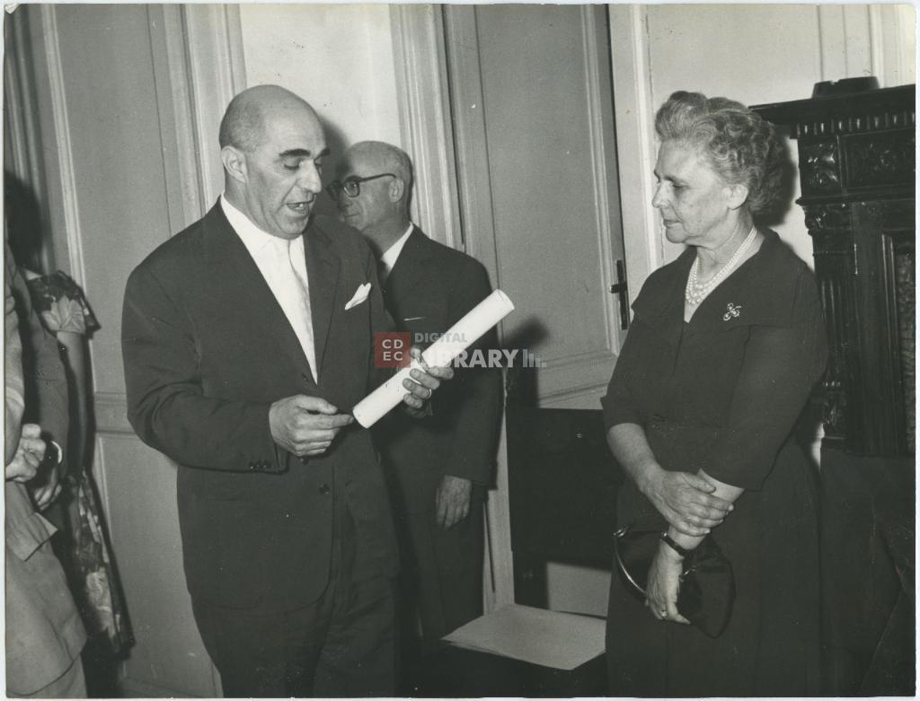 | titolo attribuito | Sergio Piperno Beer consegna ad Ada Ascarelli Sereni il diploma del "Libro d'Oro" durante una cerimonia a Roma |