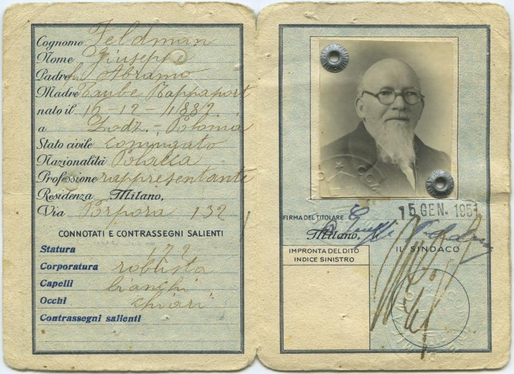 | titolo attribuito | Carta d'identità di Giuseppe Feldmann |