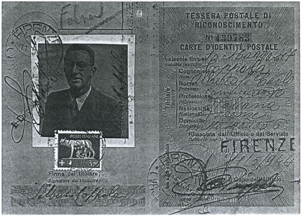 | notizie storico-critiche | Il documento d'identità di Alberto Ottolenghi venne intestato al falso nome di Alberto Carlo Coppola e rilasciato a Firenze. Presentato alla polizia svizzera, i funzionari soprascrissero la dicitura "falsa" |