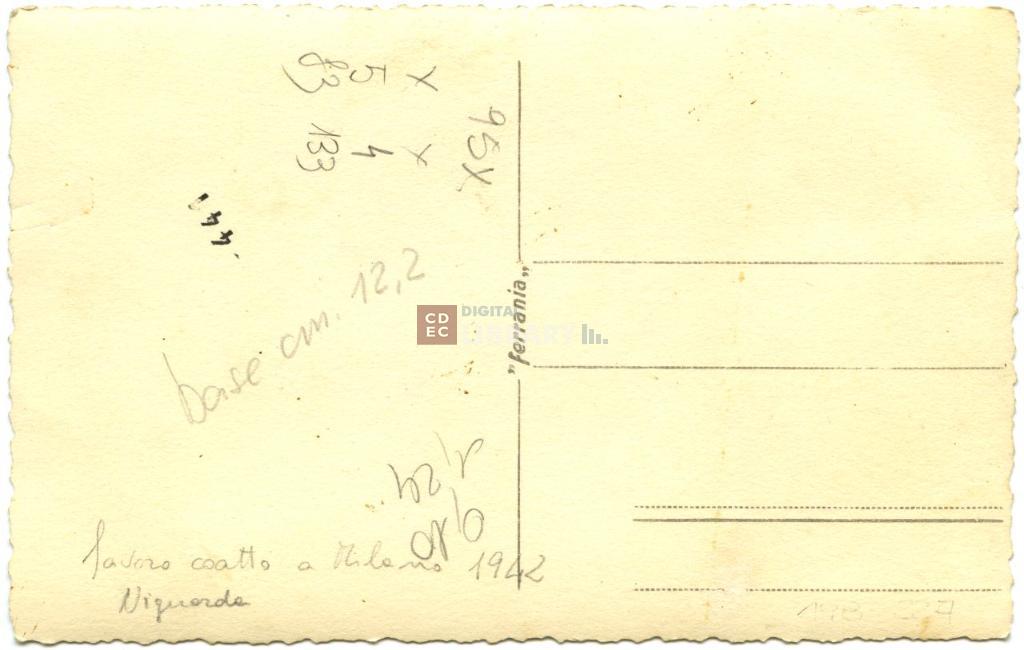 | notizie storico-critiche | La datazione è desunta dalla dichiarazione di Renato Forti su quanto riportato sul libretto di lavoro in suo possesso, che indica la precettazione al lavoro coatto dal 2 maggio al 7 giugno 1943 |