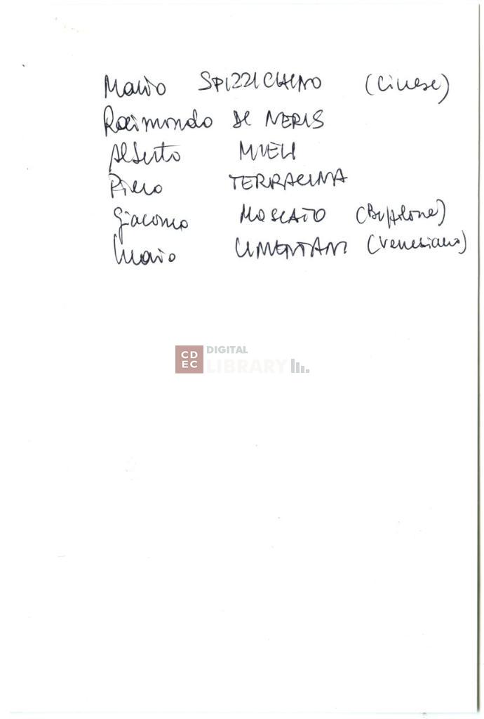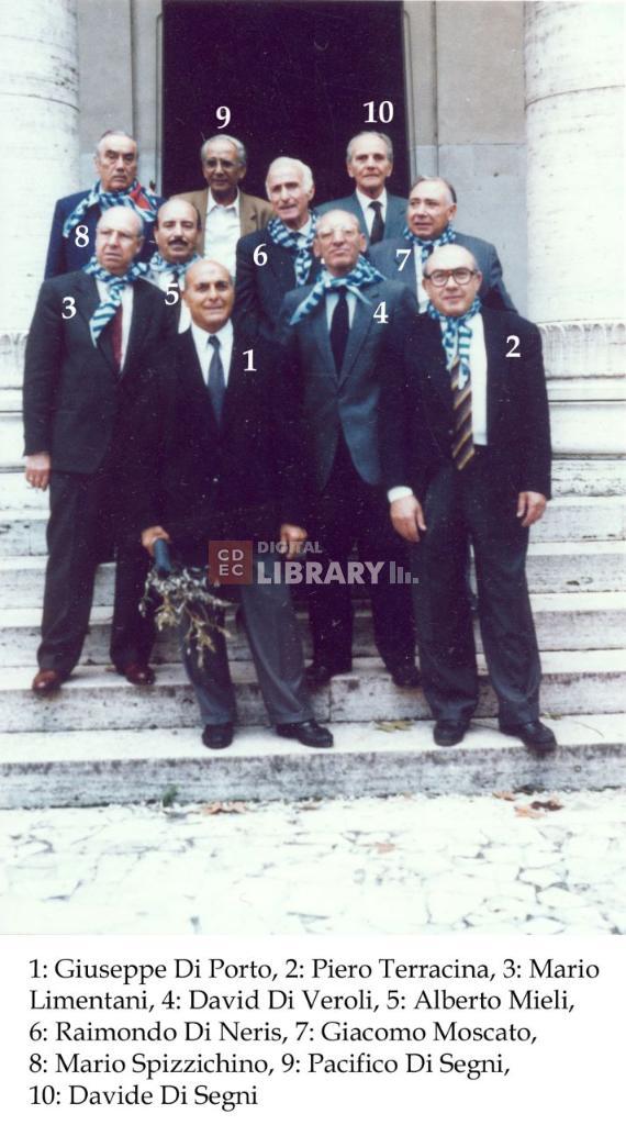 osservazioni | Nella fotografia sono ritratti 1: Giuseppe Di Porto, 2: Piero Terracina, 3: Mario Limentani, 4: David Di Veroli, 5: Alberto Mieli, 6: Raimondo Di Neris, 7: Giacomo Moscato, 8: Mario Spizzichino, 9: Pacifico Di Segni, 10: Davide Di Segni |