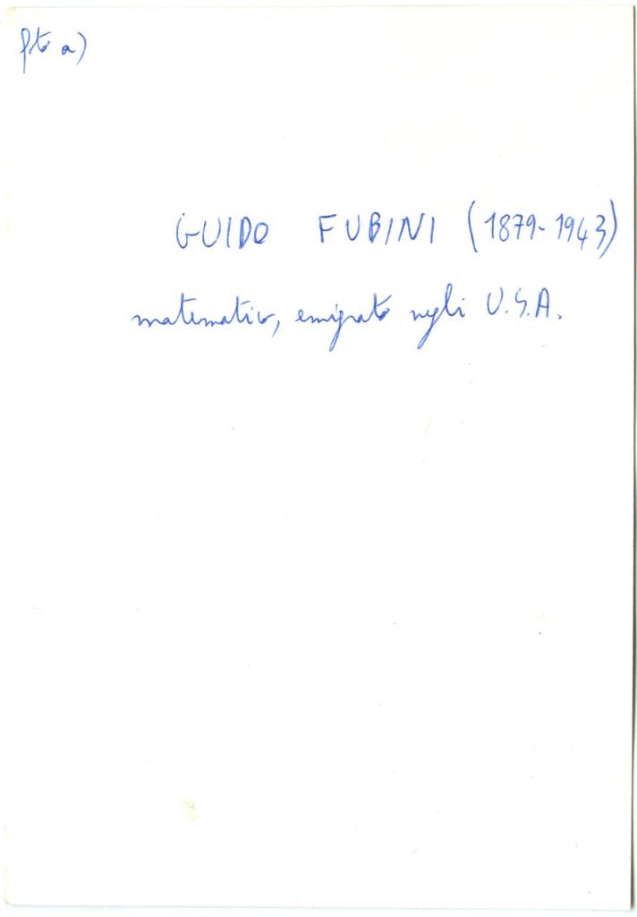 | iscrizioni | sul verso del supporto cartaceo l'indicazione manoscritta "foto a)/ Guido Fubini (1879-1943) matematico, emigrato negli U.S.A." |