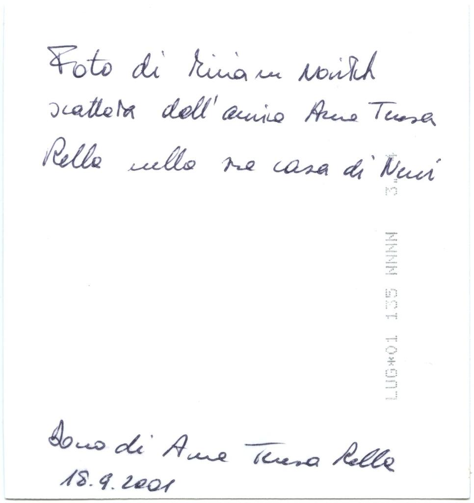 | iscrizioni | sul verso del supporto l'indicazione manoscritta "Foto di Miriam Novitch scattata dall'amica Anna Teresa Rella nella sua casa di Nervi/ Dono di Anna Teresa Rella 18.9.2001" |