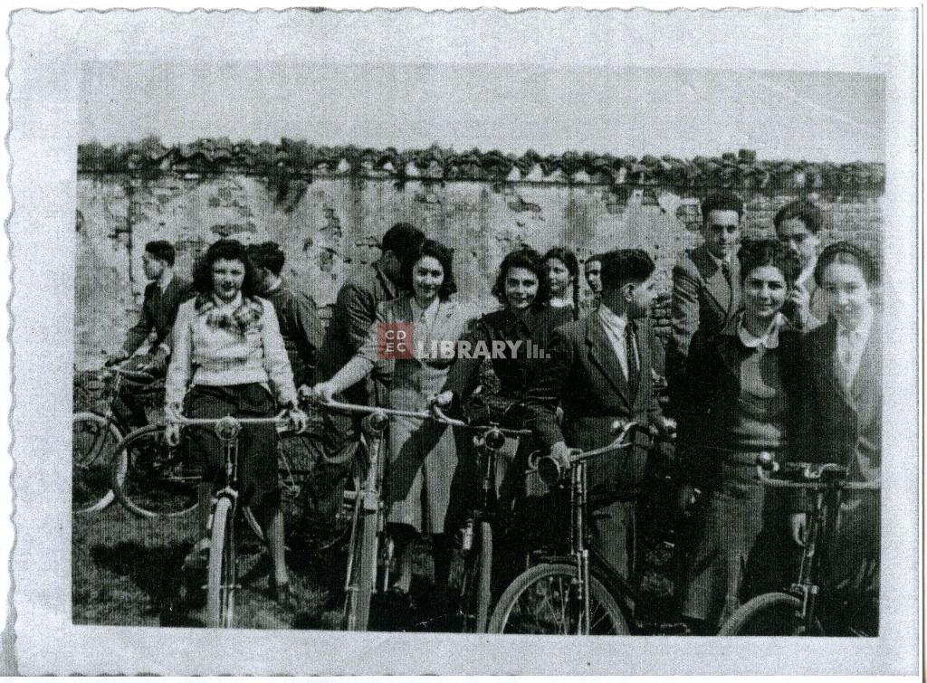 titolo attribuito | Ritratto degli alunni della scuola ebraica di Milano in gita in bicicletta all'Abbazia di Chiaravalle |