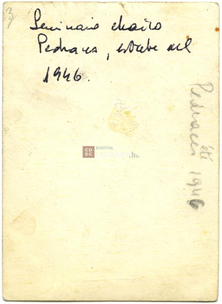 iscrizioni | sul verso del supporto l'indicazione manoscritta "Seminario ebraico Pedraces, estate del 1946" e "Pedraces été 1946" |