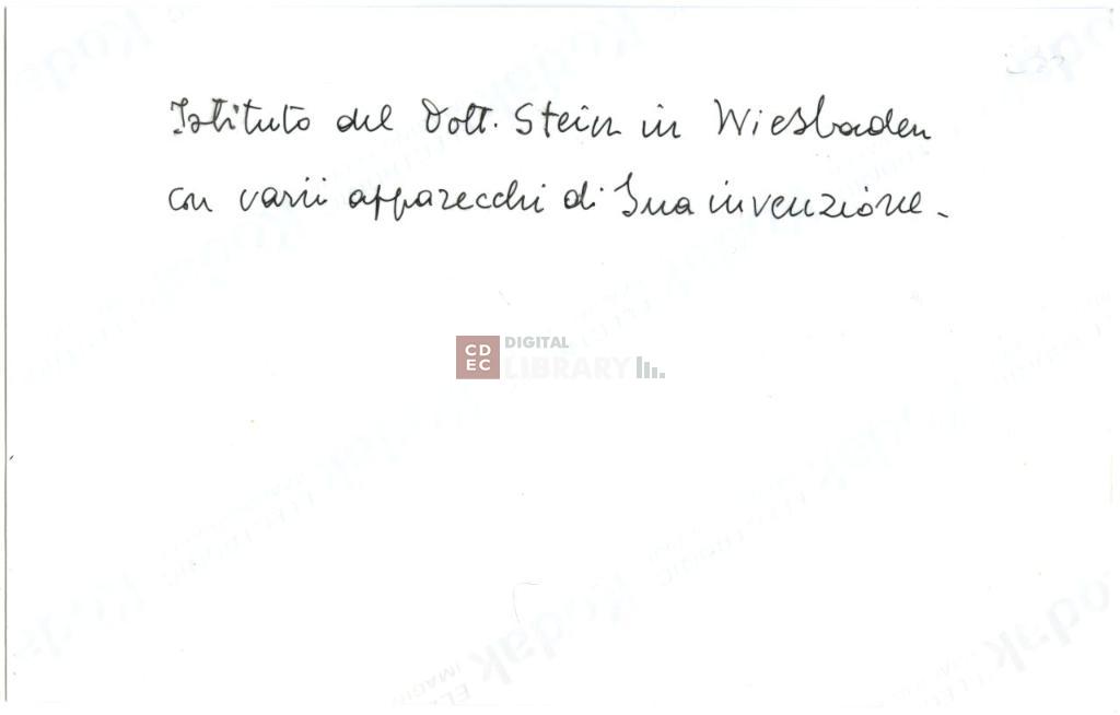 | iscrizioni | sul verso del supporto l'indicazione manoscritta "Istituto del dott. Stein in Wiesbaden con vari apparecchi di sua invenzione" |