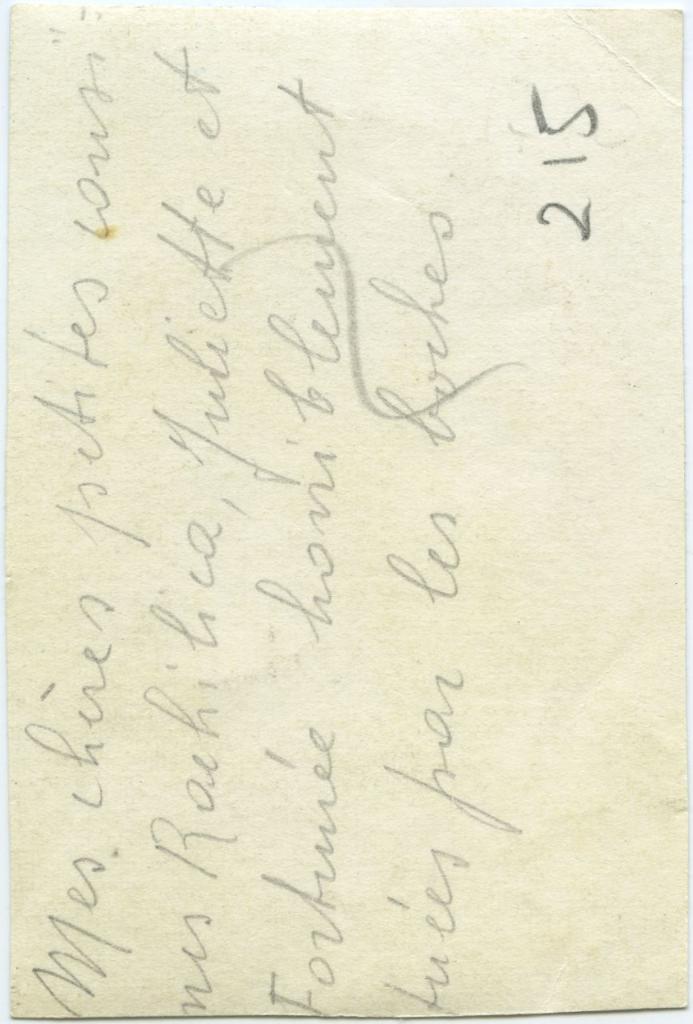| iscrizioni | sul verso del supporto l'indicazione manoscritta a matita "Mes chères petite cousines Rachilica, Juliette et Fortunée hamiblement tuées par les boches" [termine dispregiativo a indicare i tedeschi] |