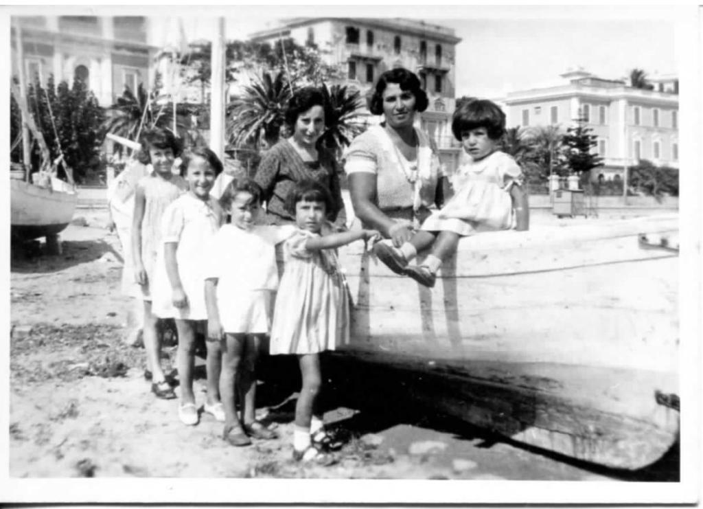titolo attribuito | Ritratto di Marcella Luzzatto in Gattegno con i figli Alberto, Virginia e Lea Gattegno e una conoscente con due bambine al mare |