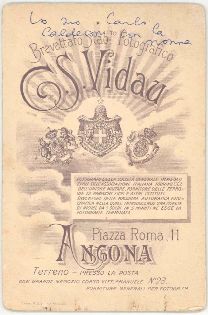| iscrizioni | sul verso del supporto secondario in alto l'indicazione manoscritta "Lo zio Carlo Calderoni con la nonna" |