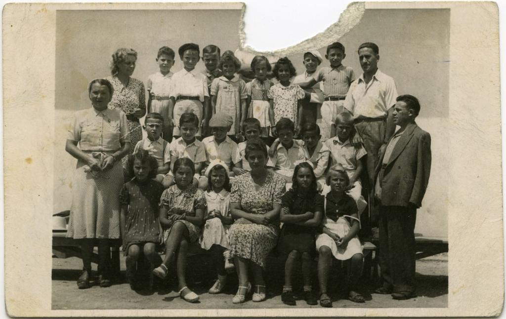 | osservazioni | Scolaresca nel campo di internamento di Ferramonti di Tarsia. Terza bambina da sinistra seduta nella fila davanti Ruth Hauben con cappellino bianco. Bernardo Klein primo bambino a sinistra nella fila in alto. Nella stessa fila, le sorelle Ruth Sperber 4° da sinistra e Ninni Sperber 6° da sinistra. Markus Klein, insegnante di ivrit, cioè di ebraico, l'uomo a destra in piedi con la giacca sulle spalle. |