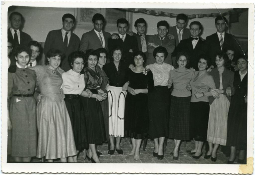 | osservazioni | Festa di Purim al C.G.E.(Circolo Giovanile Ebraico, di Milano) - Quarto da destra in alto Bernardo Klein, quarta da sinistra Renata Sarfati, ottava da sinistra con camicetta bianca Ruth Hauben, nona da sinistra (vedi fondo 510) Vittoria Afnaim, decima da sinistra Viviana Razon. |