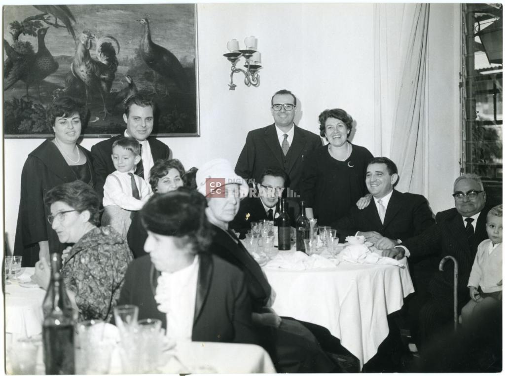| osservazioni | La famiglia Portaleone al ricevimento. Da sinistra la prima coppia in piedi: Alba Portaleone Anav e Lello Anav, coniugi. Poi seguono: Bruno Portaleone e Graziella Portaleone Foà in piedi, che tiene una mano sulla spalla di Noè Foà, seduto |