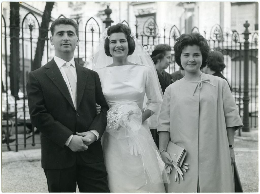 | osservazioni | Nozze di Ruth Hauben e Vito Foà al Tempio Maggiore di Roma - gli sposi accanto a Sonia Hauben (poi coniugata Rosenbaum), sorella della sposa. |