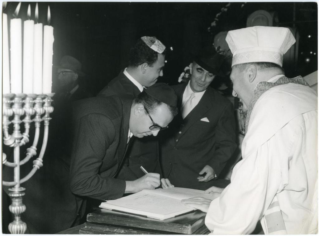 | titolo attribuito | Bruno Portaleone, testimone dello sposo, firma il registro davanti a rav Elio Toaff, alle nozze di Ruth Hauben e Vito Foà |