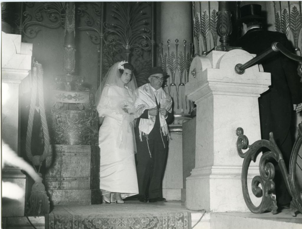 | osservazioni | Nozze di Ruth Hauben e Vito Foà al Tempio Maggiore di Roma - la sposa, accompagnata dal padre Salomon Hauben, si dirige verso la tevà |