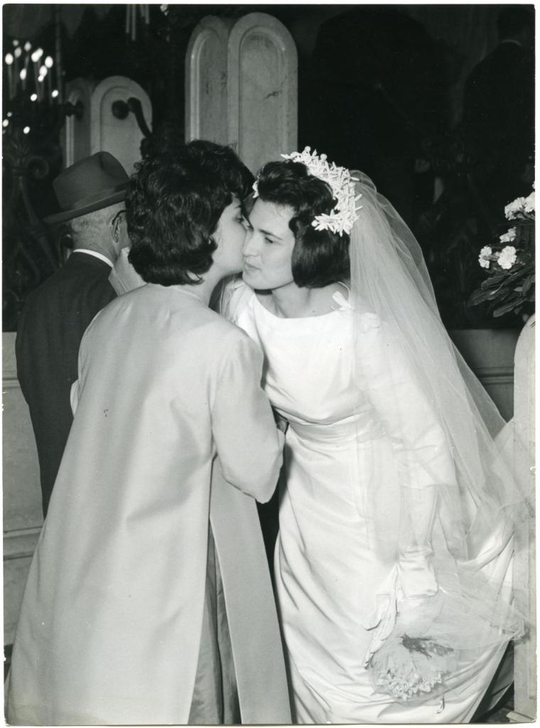 | osservazioni | Nozze di Ruth Hauben e Vito FoĆ al Tempio Maggiore di Roma - la sposa abbraccia la sorella, Sonia Hauben |