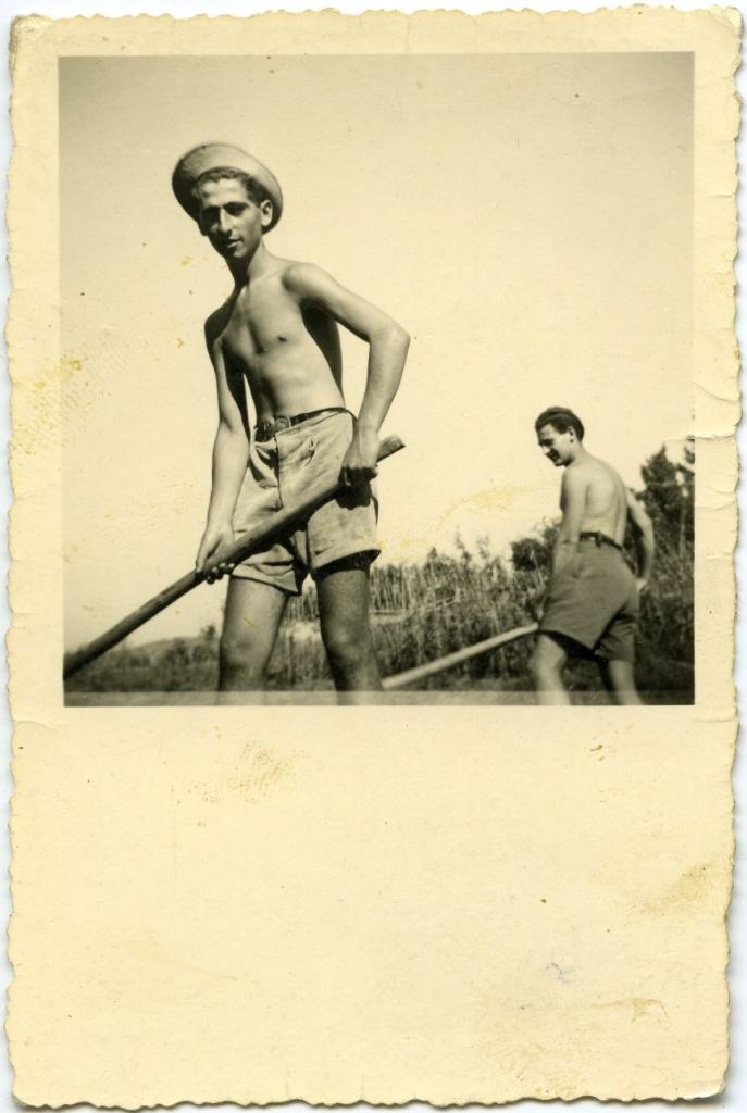 | osservazioni | Vito Foà, in primo piano, al lavoro nell'Akharà Tel Broscim - Zofim, nell'estate del 1954. In secondo piano Dario Di Capua. |