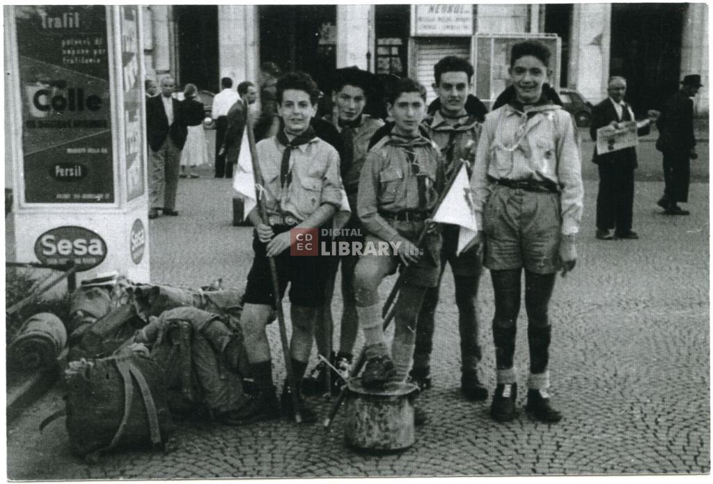 | osservazioni | Zofim milanesi in partenza per un campeggio dalla stazione Centrale di Milano nel 1949. Da sinistra Donato D'Urbino; Bernardo Klein; Vito Foà; Giordano D'Urbino; Guido Segre (Papino) |