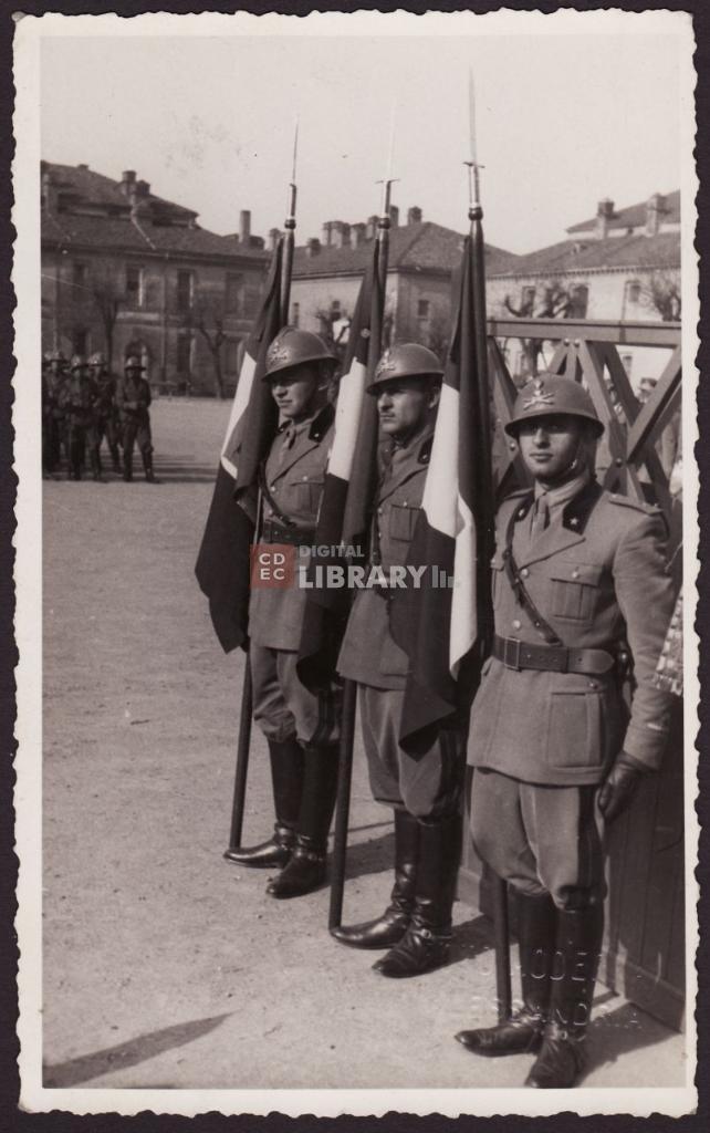 osservazioni | Il primo a destra รจ Donato Jona (cugino del donatore Guido Levi Sacerdotti), che prende parte alla lotta di Liberazione come partigiano nell'astigiano |