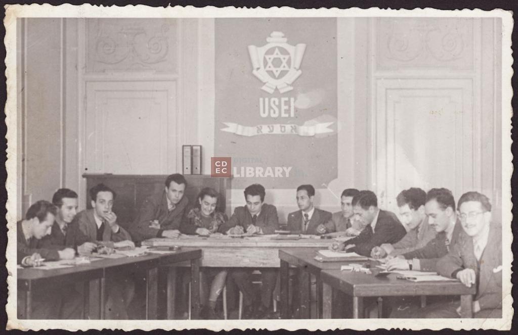 | titolo attribuito | Guido Levi Sacerdotti, Ugo Sacerdote, Isak Geleris, Lia Errera, Erich Linder, Luciano Coen e altri a una riunione del Comitato centrale dell'USEI, Beth Atalmud di Torino |