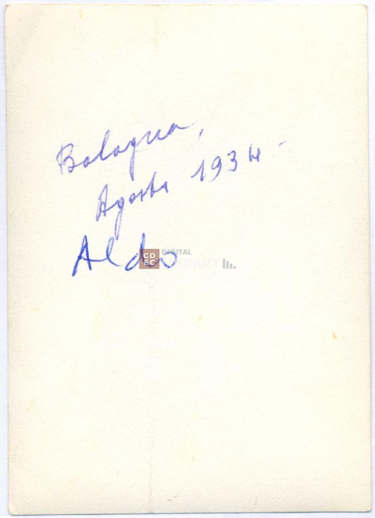 | iscrizioni | sul verso del supporto l'indicazione manoscritta "Bologna, agosto 1934/ Aldo" |