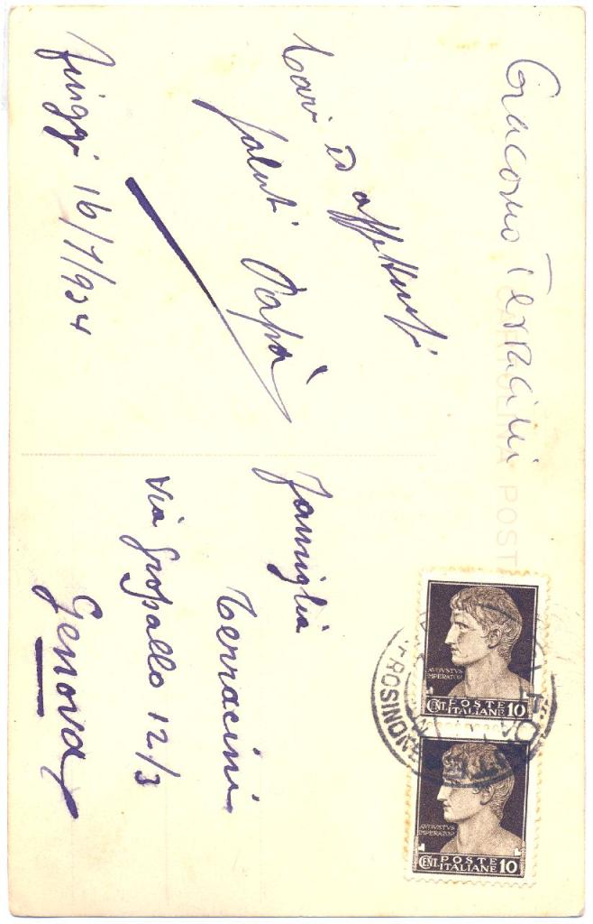 | notizie storico-critiche | La cartolina fu inviata alla Famiglia Terracini, residente a Genova in via Gropallo 12/3 |