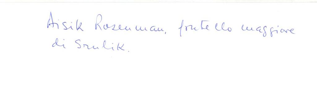 | iscrizioni | sul verso del supporto l'indicazione manoscritta "Aisik Rosenman, fratello maggiore di Srulik" |