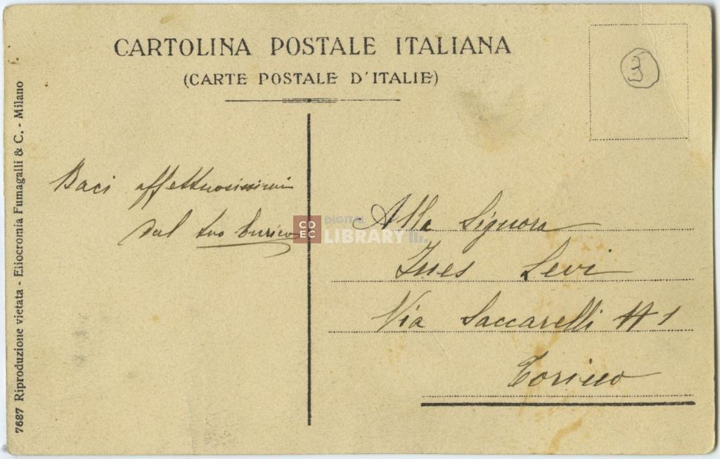 | timbri, marchi | sul verso del supporto a sinistra l'indicazione dello stampatore "7687 Riproduzione vietata - Eliocromia Fumagalli & C. - Milano" |