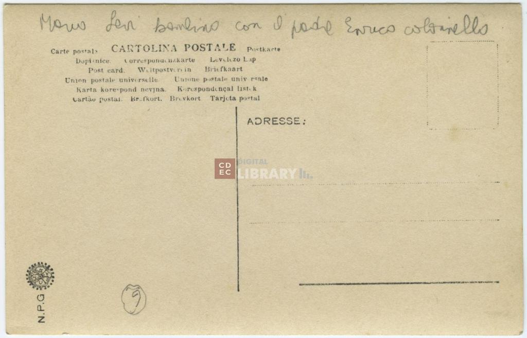 | indicazioni sull'oggetto | presenti due copie del medesimo scatto - scansione digitale da stampa alla gelatina ai sali d'argento di cui una incollata su cartone con decori floreali in formato 20x26 e l'altra in formato cartolina |