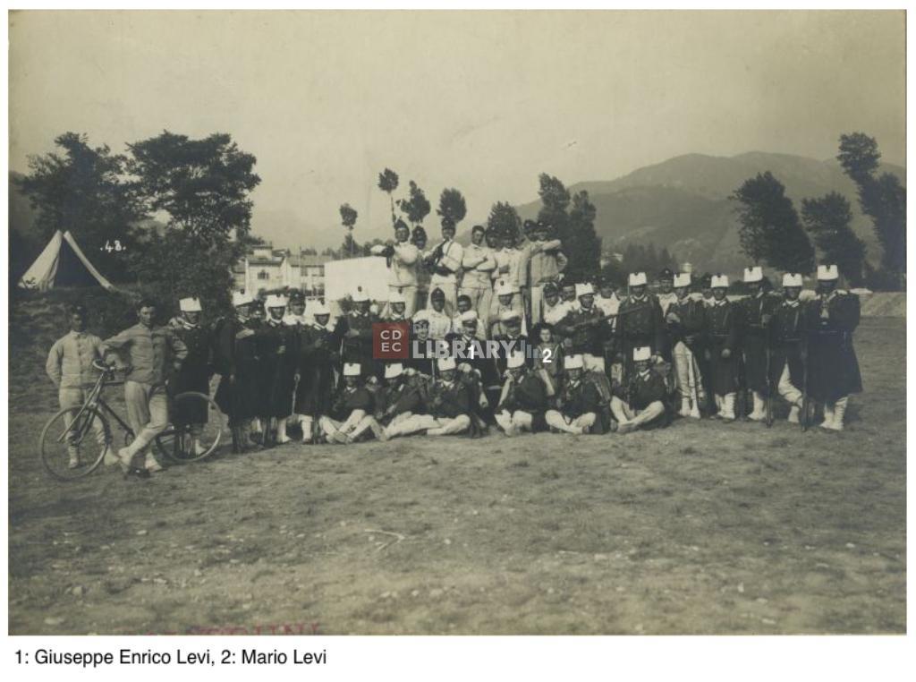 | osservazioni | Nella fotografia si riconoscono nel gruppo dei tre ufficiali seduti in seconda fila al centro 1: Giuseppe Enrico Levi e 2: Mario Levi bambino vestito alla marinara |