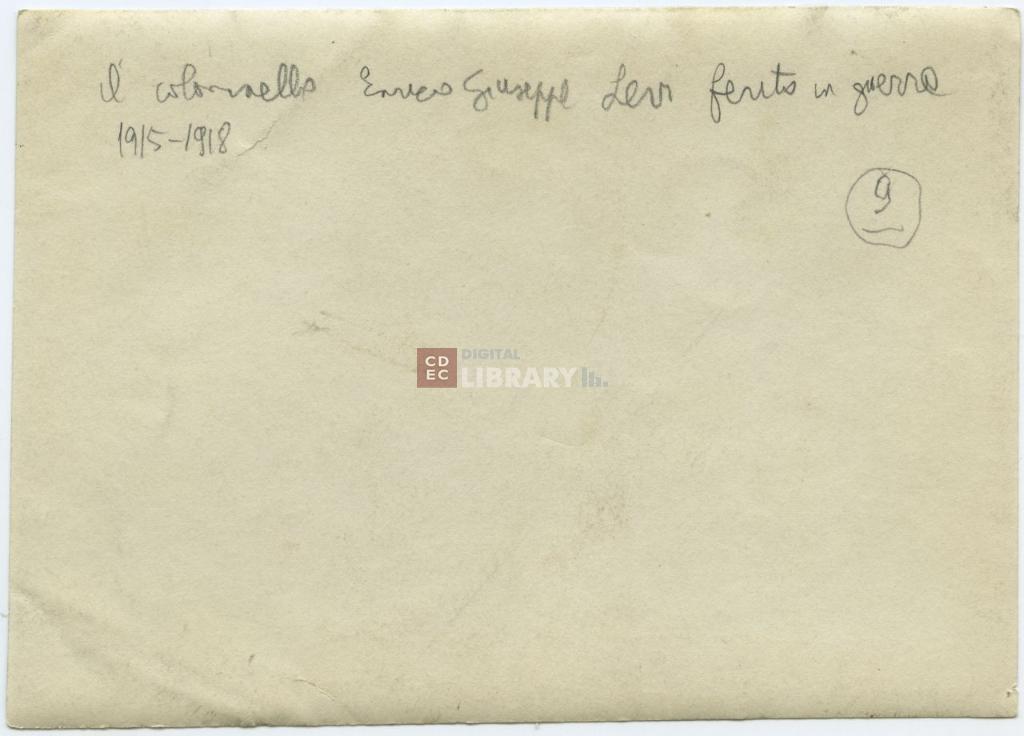 | iscrizioni | sul verso del supporto l'indicazione manoscritta "il colonnello Enrico Giuseppe Levi ferito in guerra 1915-1918" |