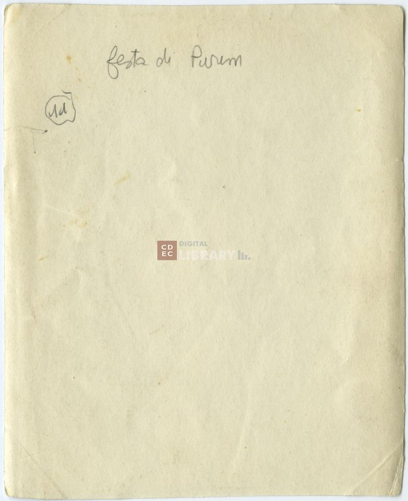 | iscrizioni | sul verso del supporto l'indicazione manoscritta "festa di Purim" |