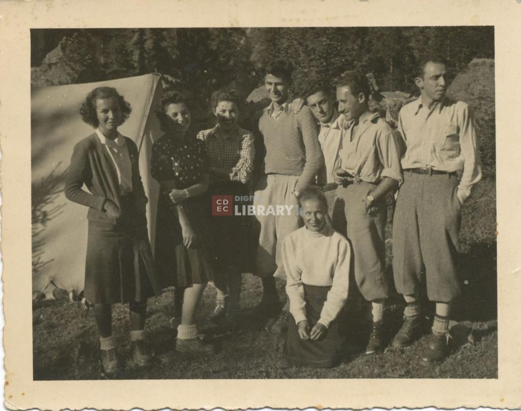 | titolo attribuito | Ritratto di gruppo con le sorelle Anna e Lia Fubini, Giulia Colombo, Alberto Salmoni, Franco Tedeschi, Eugenio Gentili Tedeschi, Franco Momigliano, Anna Maria Levi (?) al campeggio di Sylvenoire |