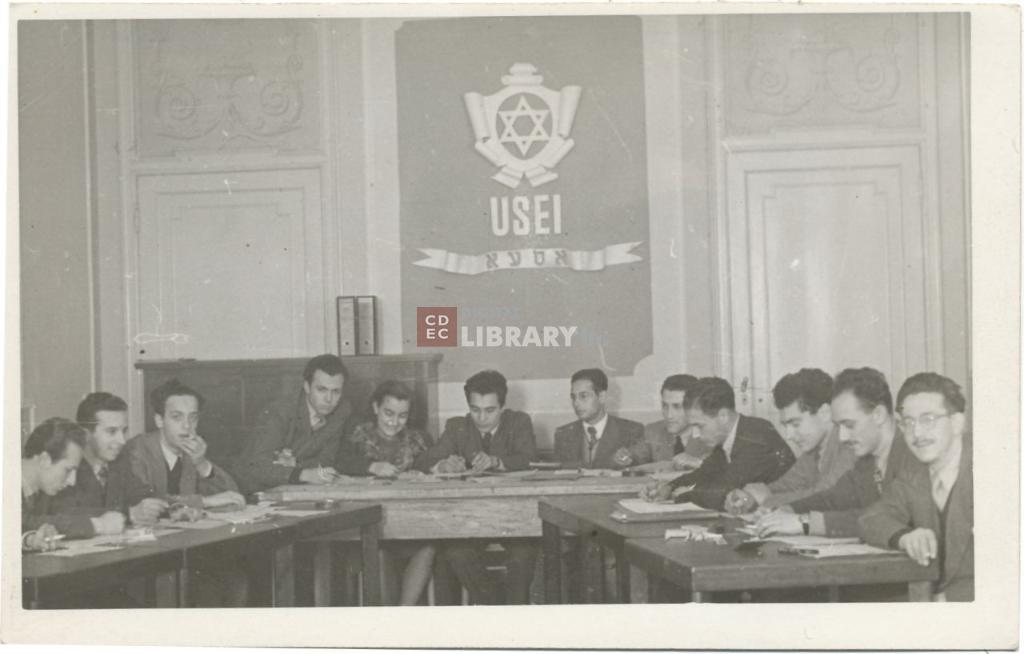 | titolo attribuito | Guido Levi Sacerdotti, Lia Errera, Isak Geleris, Ugo Sacerdote, Erich Linder, Luciano Coen e altri a una riunione del Comitato centrale dell'USEI, Beth Atalmud di Torino |