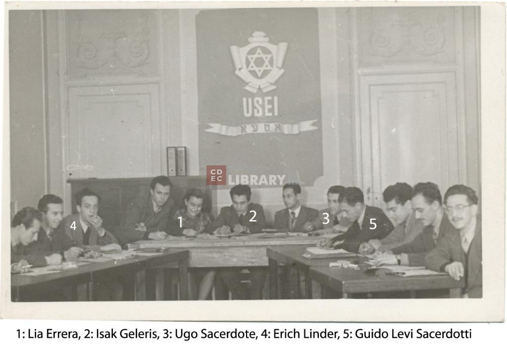 | osservazioni | Nella fotografia si riconoscono 1: Lia Errera, 2: Isak Geleris (che presiede la seduta), 3: Ugo Sacerdote, 4: Erich Linder, 5: Guido Levi Sacerdotti; nel gruppo รจ inoltre presente ma non identificato Luciano Coen. |