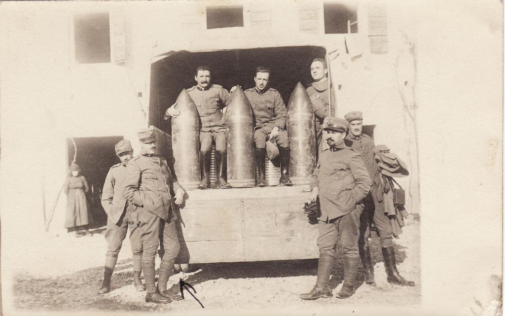 | titolo attribuito | Ritratto di Ruggero Pardo con alcuni artificieri accanto a un camion con tre bombe durante la Grande Guerra |