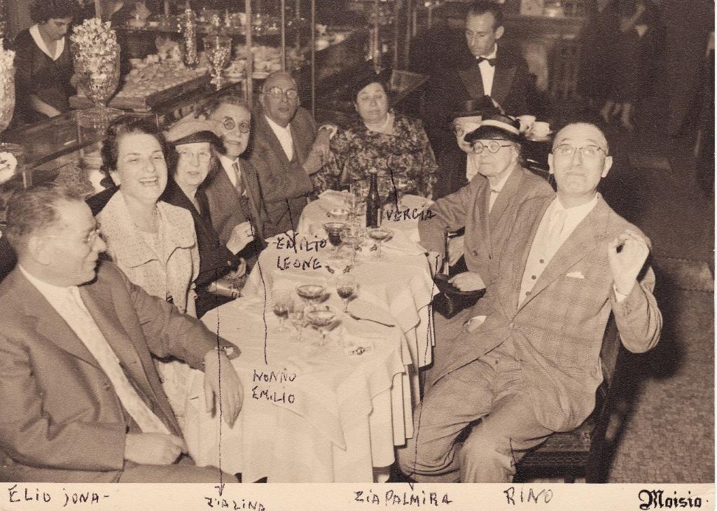 | osservazioni | Seduti intorno al tavolo da sinistra Elio Jona, Marcella (detta Lella) Servi in Castelnuovo, Carolina (detta Lina) Treves in Jona, Emilio Jona, Emilio Leone, Virginia (detta Vergia) Servi in Leone, Esterina Jona in Servi, Palmira Jona, Salvatore (detto Rino) Jona |