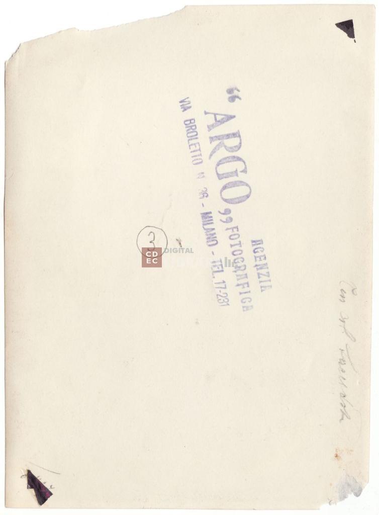 timbri, marchi | sul verso del supporto timbro a inchiostro blu con il marchio commerciale del fotografo |