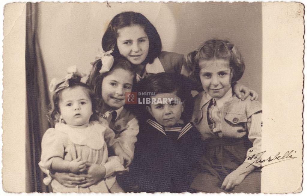 osservazioni | I cinque figli di Paolo Perrini e Laura Sacerdote in Perrini: da sinistra Anna Perrini, Paola Perrini, Franca Perrini, Mario Perrini, Carla Perrini |