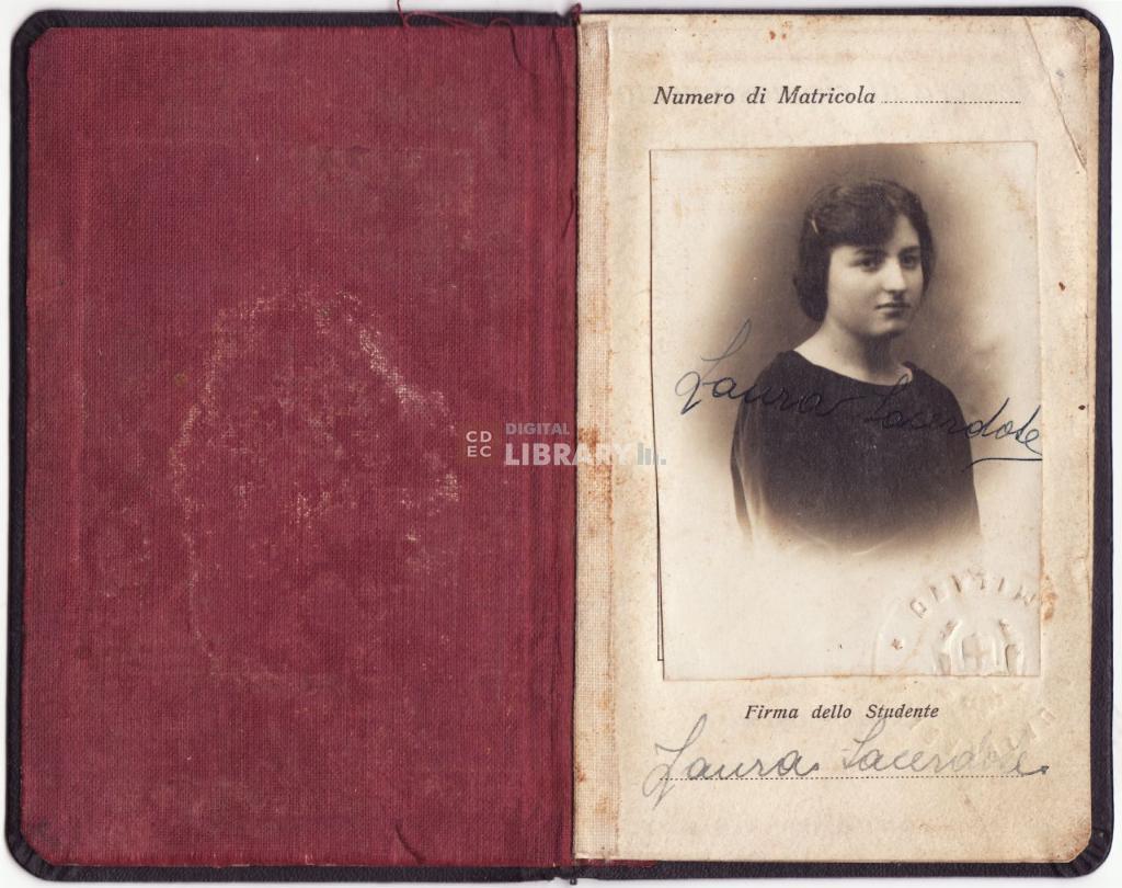 titolo attribuito | Tessera di riconoscimento dell'Università di Milano di Sacerdote Laura |