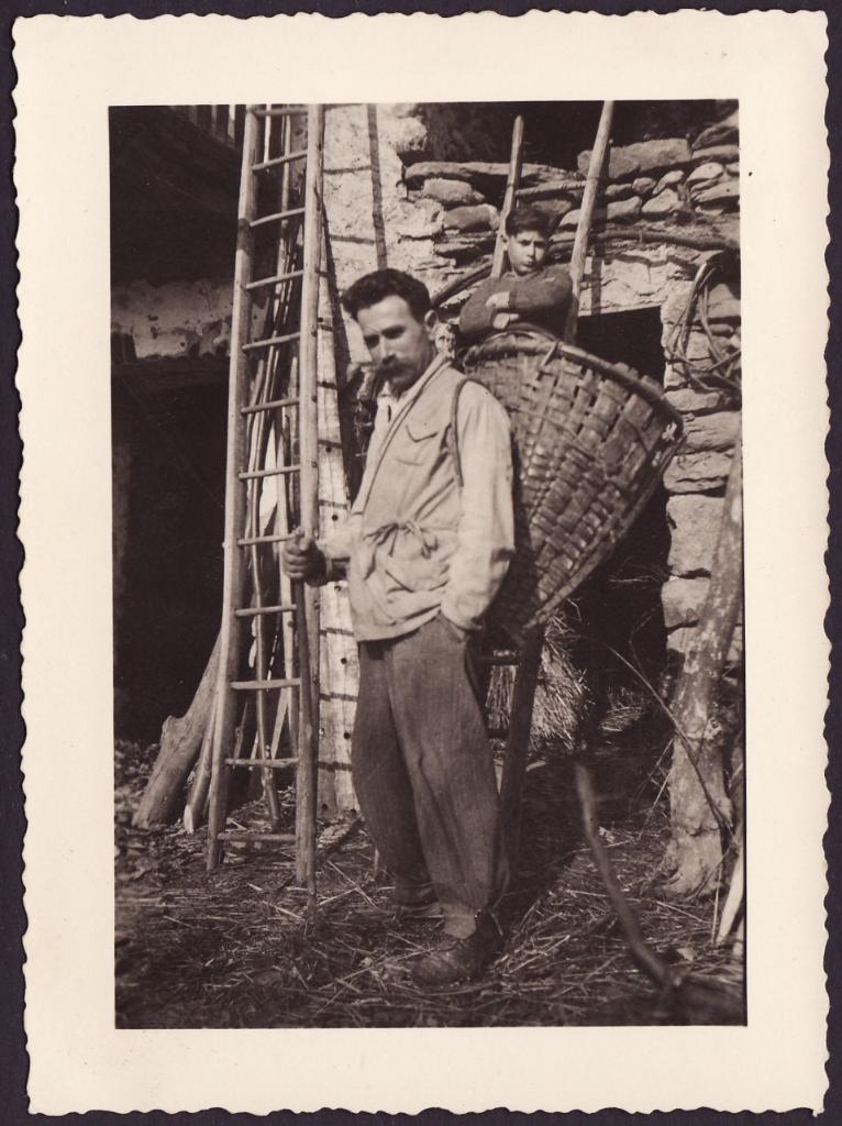| osservazioni | in primo piano Vittorio Valabrega, in veste da montanaro e con i baffi per rendersi meno riconoscibile, con una gerla sulle spalle; dietro di lui sulla scala Sergio Valabrega. Padre e figlio sono ritratti nella casa di Rubiana dove la famiglia Valabrega (sotto la falsa identità Valpreda) si rifugiò durante il periodo delle persecuzioni |