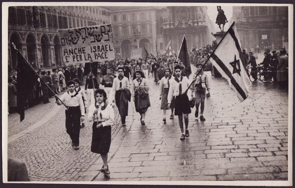 | osservazioni | nelle prime file da sinistra Guido Valabrega, Idalba Jona con il cartello, Dino Colombo, Delia Luzzati, Silvana Tedeschi, Giuseppe Tedesco con la bandiera di Israele, Massimo Luzzati |