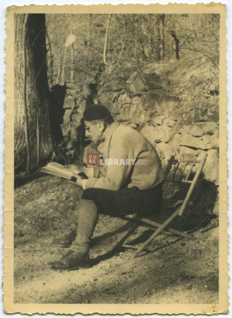 osservazioni | In riferimento a questo scatto si legga il brano dagli "Appunti autobiografici" di Valerio Valabrega: "[...] Quando si sentiva aleggiare l'ipotesi di un rastrellamento tutto il gruppo di venti rifugiati dal nonno Enrico era in attesa spasmodica del peggio. Ma il nonno era tranquillo perché si sentiva protetto dal suo Dio (forse l'Architetto dell'Universo ebraico): usciva sull'aia della nostra baita con la kippà in testa (la papalina), il libro delle preghiere ebraico, il seggiolino pieghevole per sedersi. Così cominciava a pregare in ebraico, fingendo di capire che cosa diceva, ma l'impegno e il sentimento erano per lui non solo un sostegno morale ma una garanzia di tangibile protezione. Infatti i tedeschi non arrivavano e lui: "avete visto?".[...]" [tratto da A. Valabrega, "M.U.R.I. 1938", 2013, pp. 106-107] |