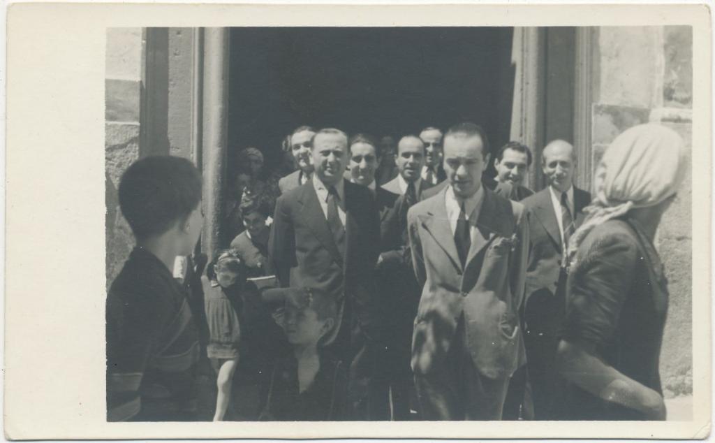 | titolo attribuito | Alcuni internati ebrei stranieri con domicilio coatto escono da un edificio insieme ad Aron Windwehr |