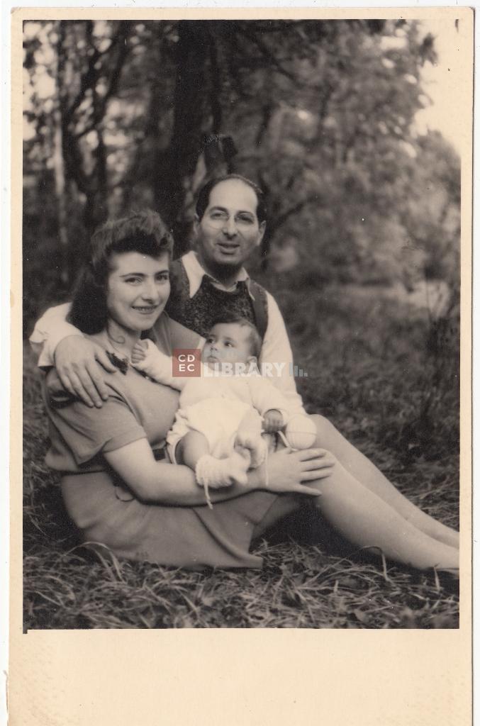 osservazioni | Da sinistra Olga Wiener in Wachsberger (deportata dall'Ungheria) con in braccio Clara Wachsberger, Arminio (Hasci) Wachsberger (deportato dall'Italia) |